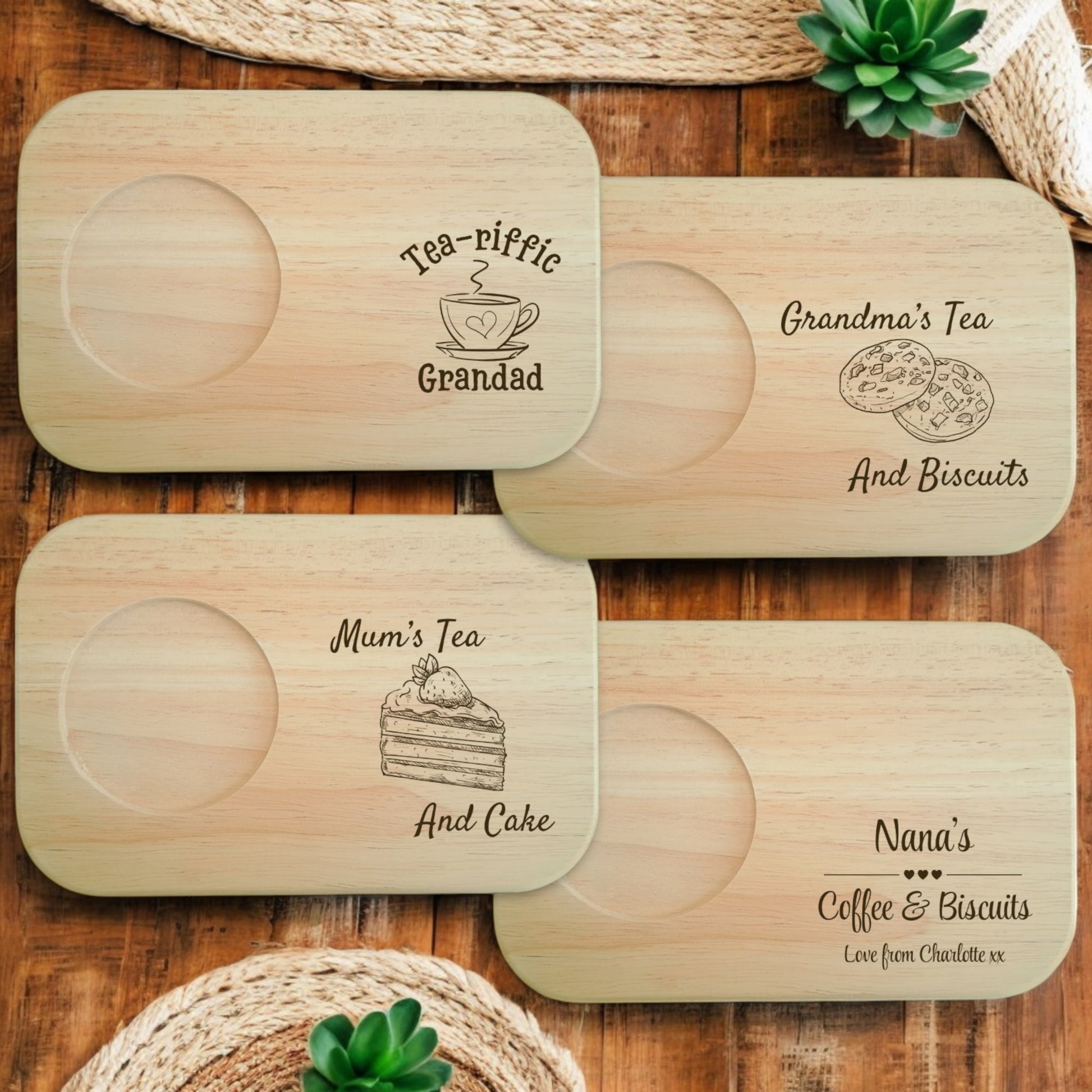 Personalised Wooden Tea & Biscuits Serving Board Tray - Engraved Rustic Breakfast Platter | Perfect Gift for Tea Lovers & Home Decor